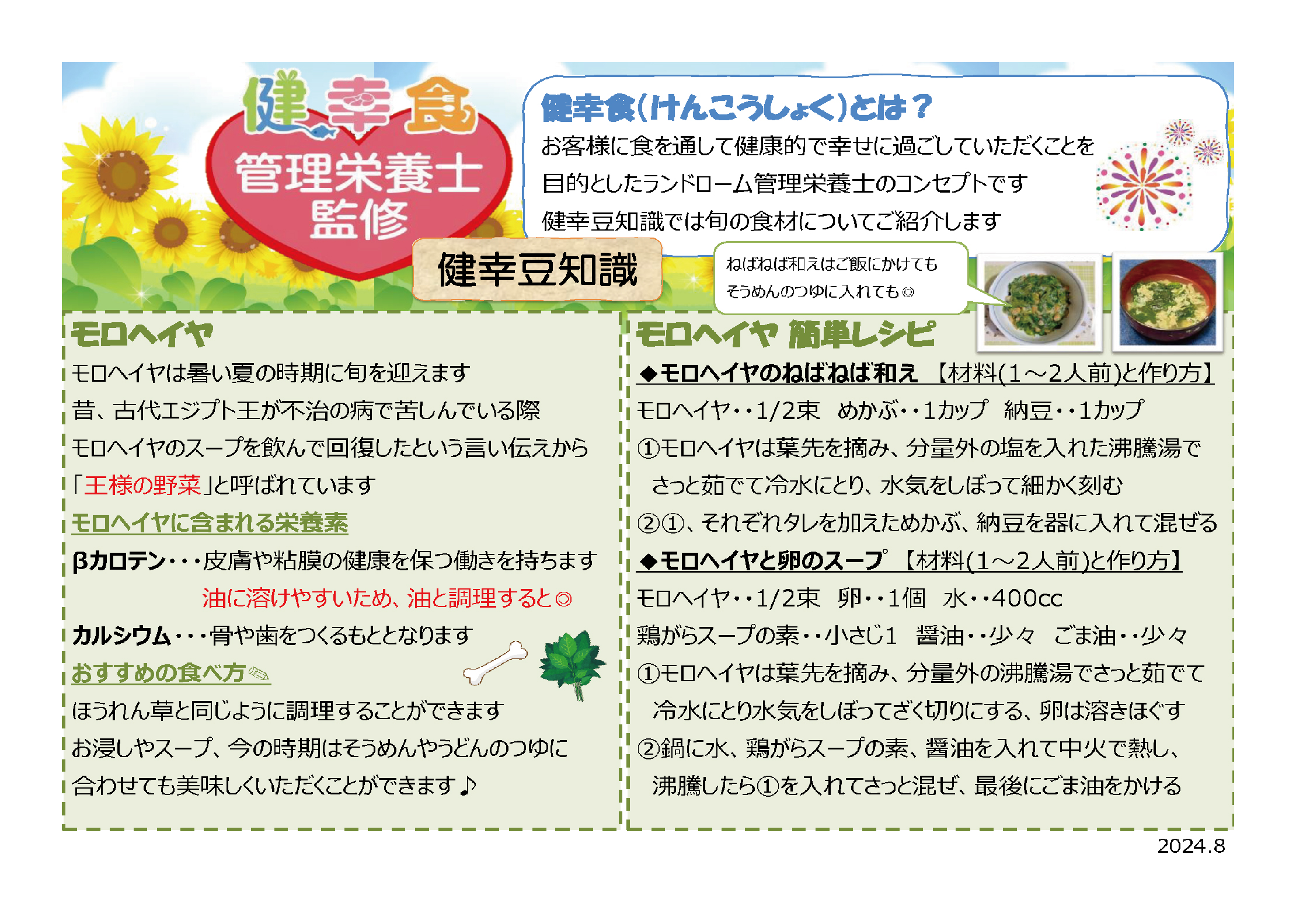 2024年8月 テーマ「モロヘイヤ」