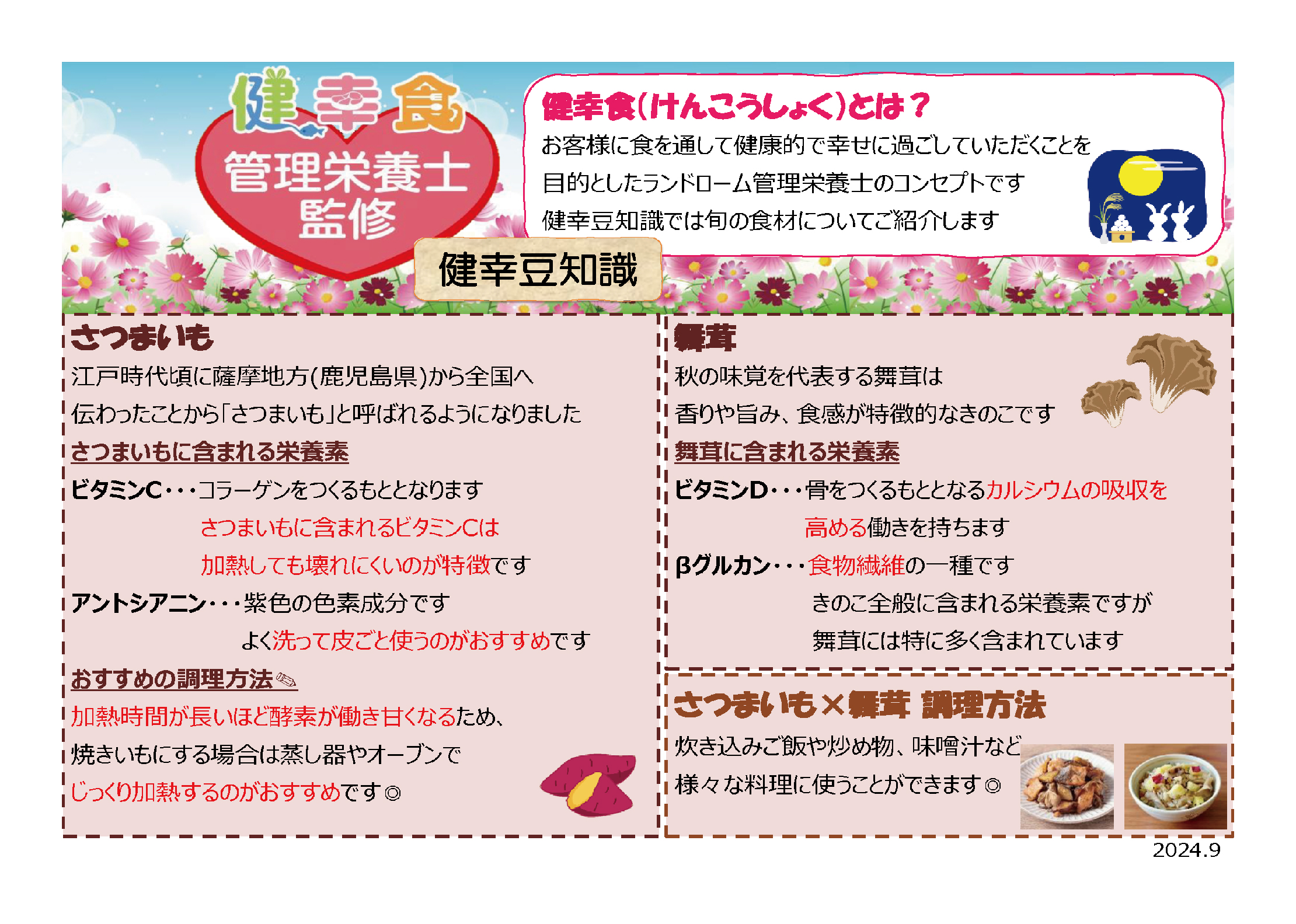 2024年9月 テーマ「さつまいも・舞茸」