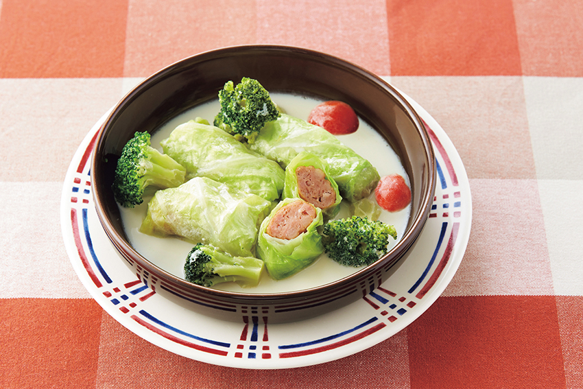 - キャベツにモーニングサーブをのせて巻く。同じようにして全部で8個作る。